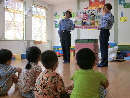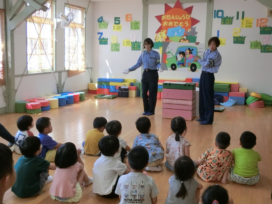 越前警察署の方による交通安全教室では横断歩道の渡り方を教わったよ。また越前市社会福祉協議会さまを通し、素敵な
